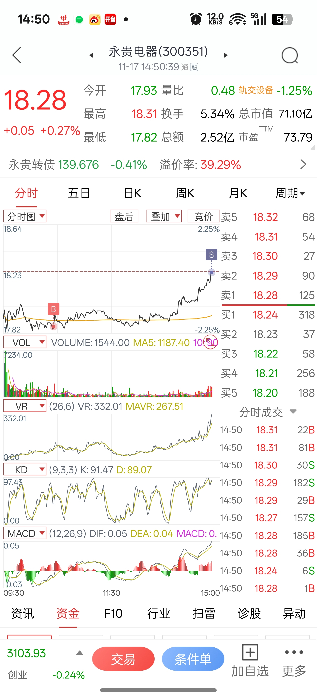 $永贵电器(SZ300351)$ 85买30卖,成本又低了