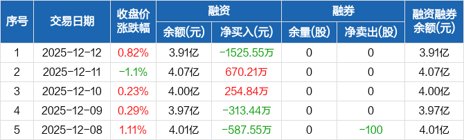 永贵电器:融资净偿还1525.55万元,融资余额3.91亿元(12-12)