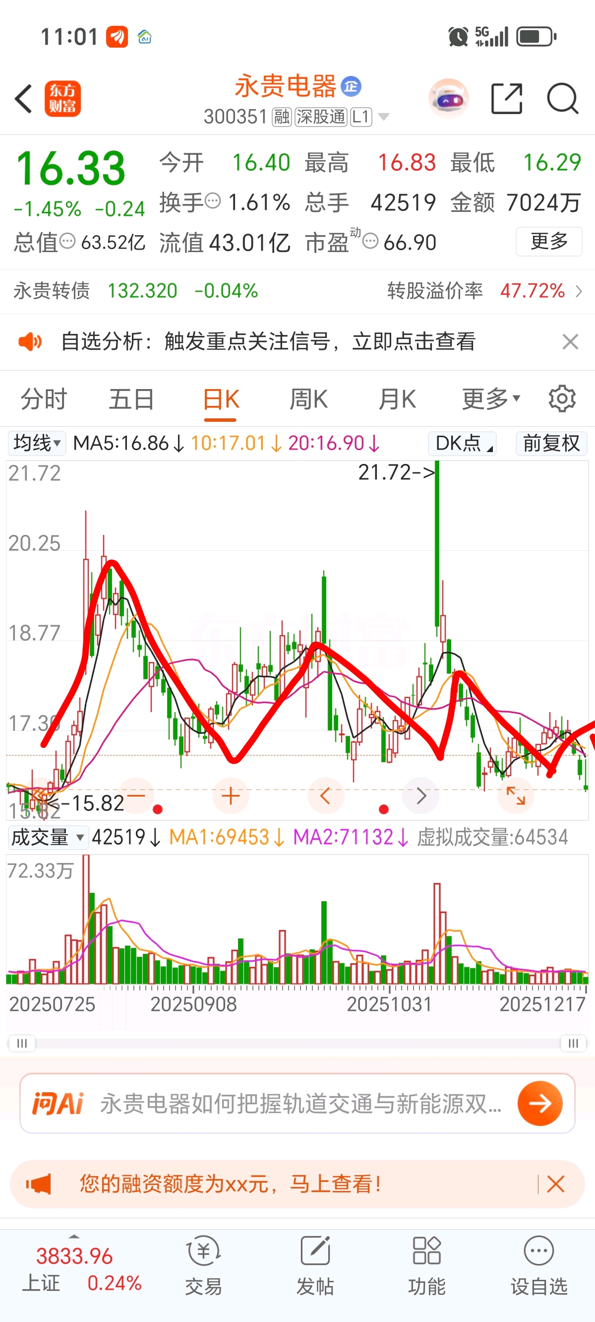 $永贵电器(SZ300351)$ 这根涨停没有打开上升空间,就只能下游了。