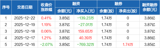 永贵电器:融资净偿还139.23万元,融资余额3.85亿元(12-22)