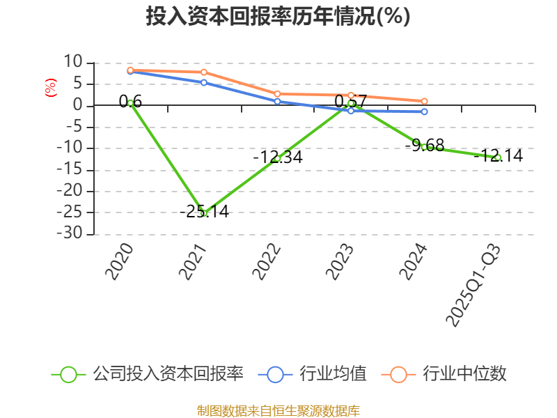 盈利能力方面, 2025年前三季度公司加权平均净资产收益率为-12.63%,同比下降9.5个百分点。公司2025年前三季度投入资本回报率为-12.14%,较上年同期下降8.56个百分点。