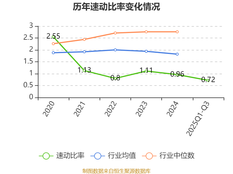 2025年前三季度,公司流动比率为1.14,速动比率为0.72。