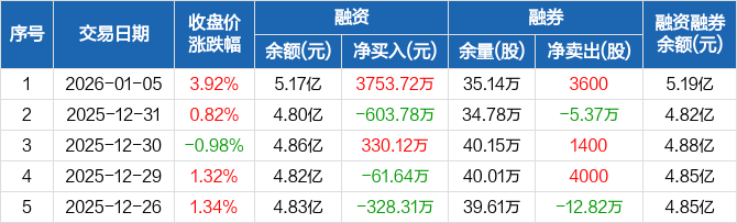 北信源:融资净买入3753.72万元,融资余额5.17亿元(01-05)
