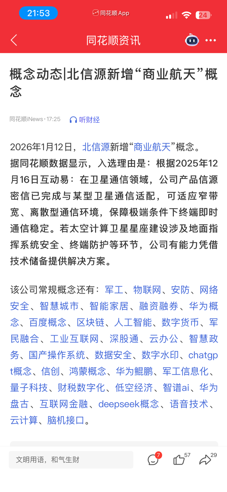 $北信源(SZ300352)$ 什么鬼,又增加航天概念?是不是想成为补涨龙?