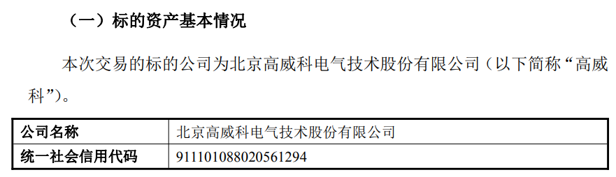 公告显示,本次交易的标的公司高威科成立于2001年2月21日,注册资本1.034亿元。2025年10月20日,公司与高威科、张浔、刘新平就公司拟收购高威科100%的股权事项签署了《合作意向协议》,约定公司拟通过发行股份及支付现金相结合的方式向前述交易对方收购其持有的高威科股权,并募集配套资金。本次发行股份及支付现金方式购买高威科100%股权事项,初步确定的交易对方为包括标的公司实际控制人张浔、刘新平及其他股东在内的全部43名股东。本次交易对方的范围尚未最终确定,最终确定的交易对方以后续公告的重组预案或重组报告书等上市公司公告披露的信息为准。