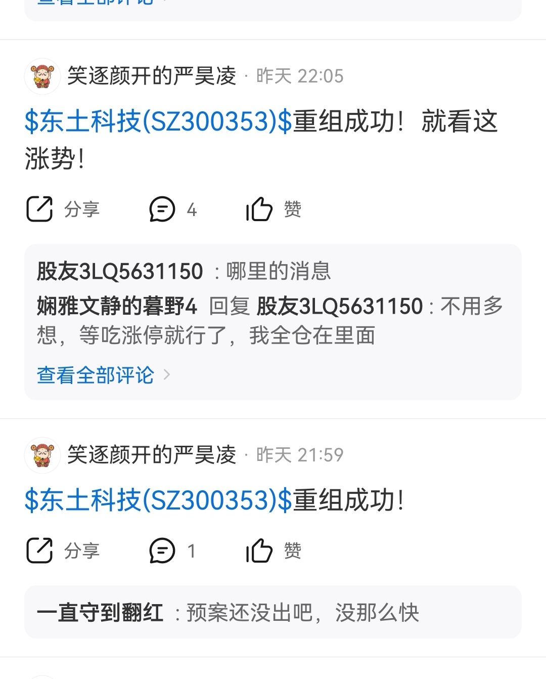 温馨提示: 1.根据《证券法》规定,禁止编造、传播虚假信息或者误导性信息,扰乱证券市场;2.用户在本社区发表的所有资料、言论等仅代表个人观点,与本网站立场无关,不对您构成任何投资建议。用户应基于自己的独立判断,自行决定证券投资并承担相应风险。《东方财富社区管理规定》