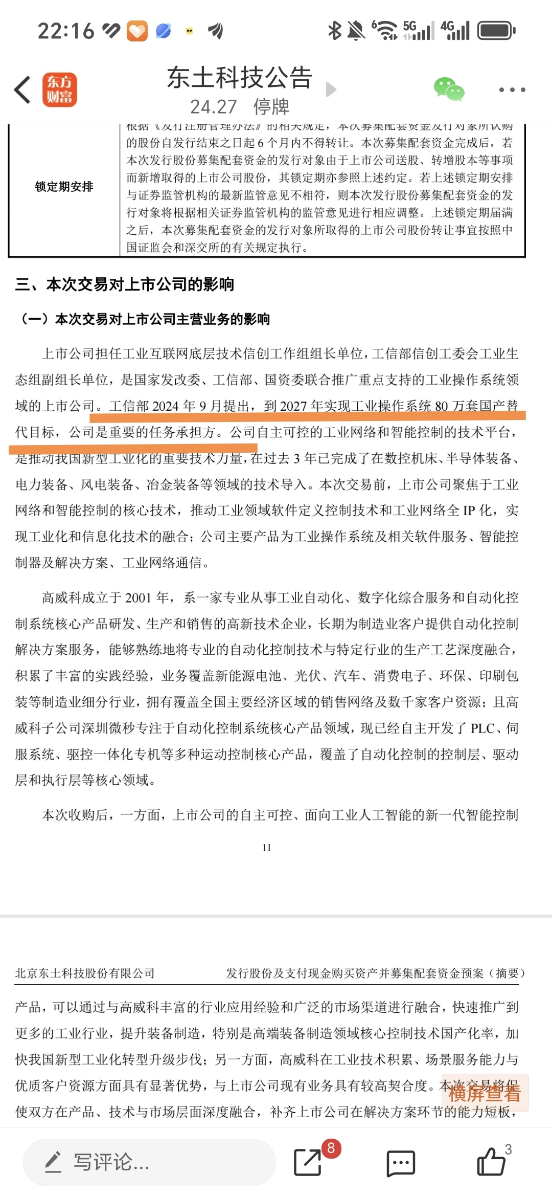 $东土科技(SZ300353)$ 东土是推进国产化的重要任务承担方,本次并购将有效加速国产化进程,国家重点扶持。特定的35家定增对象大概率国资占比高。长期看好,就对了。不必在意意短期暴涨,加油!