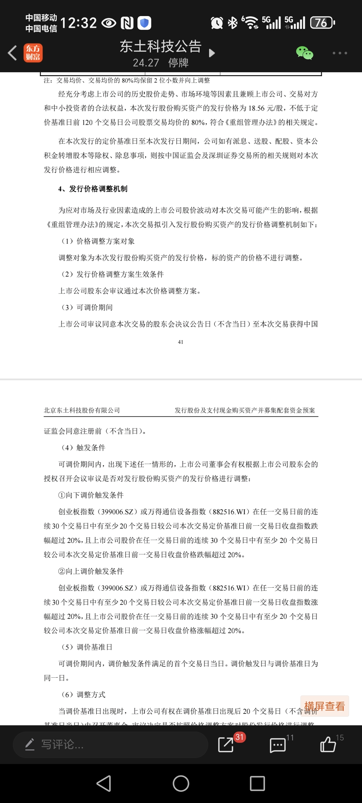$东土科技(SZ300353)$ 这个价格调整机制有没有人解读下?假设如果股价上涨超过50、是不是发行价格也要增加?