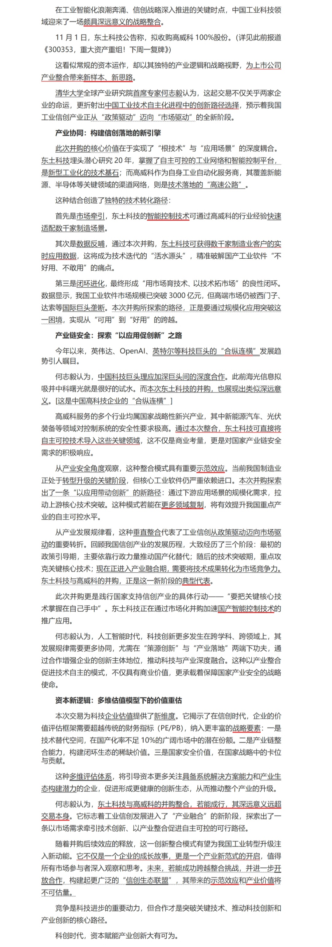 清华大学“首席专家“、北大教授何志毅亲自点评“东土收购高威科”!上海证券报刊载雄