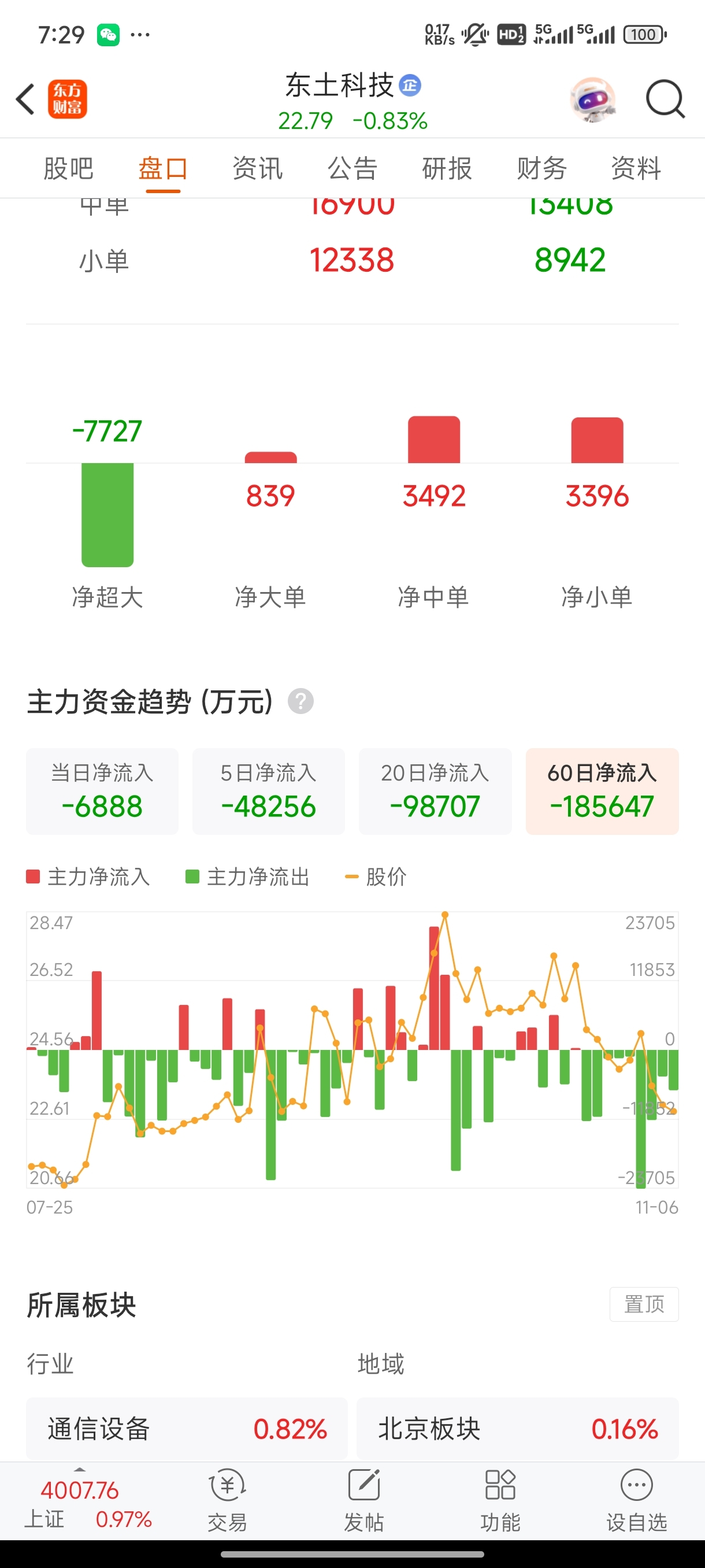 $东土科技(SZ300353)$ 60个交易日,主力净流入就16天,主力都把股票卖给韭散了