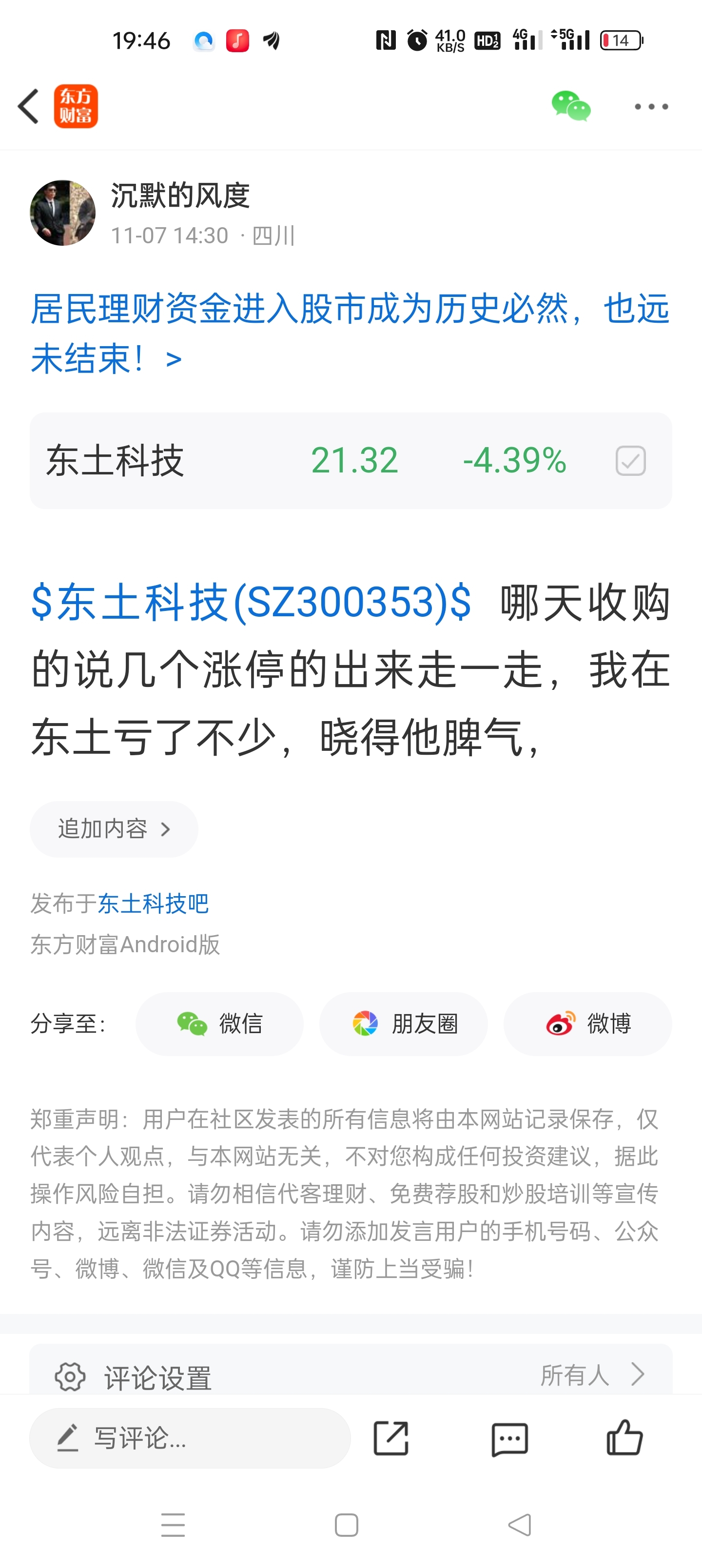 温馨提示: 1.根据《证券法》规定,禁止编造、传播虚假信息或者误导性信息,扰乱证券市场;2.用户在本社区发表的所有资料、言论等仅代表个人观点,与本网站立场无关,不对您构成任何投资建议。用户应基于自己的独立判断,自行决定证券投资并承担相应风险。《东方财富社区管理规定》
