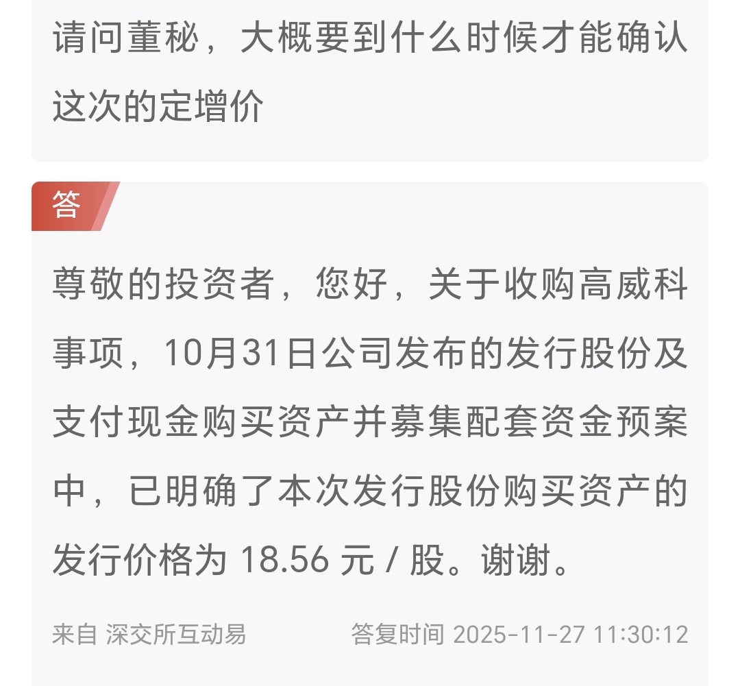 很多人看不懂也听不懂增发股份这个文件的内容,就这种认知也来炒股,难怪只能是韭菜。定向增发的股份是特定投资人以增发价格订购的,是参考当时发布增发股份信息时的二十日平均价。之后股价涨了还是跌了都不影响已经确定的增发价格。那些韭菜自己道听途说搞坏了自己的心态,只好不停地问董秘,董秘确定地回答增发价格已经确定。这些人问了也听不懂,你们真的是太累了,最好别炒股了,会要命的。