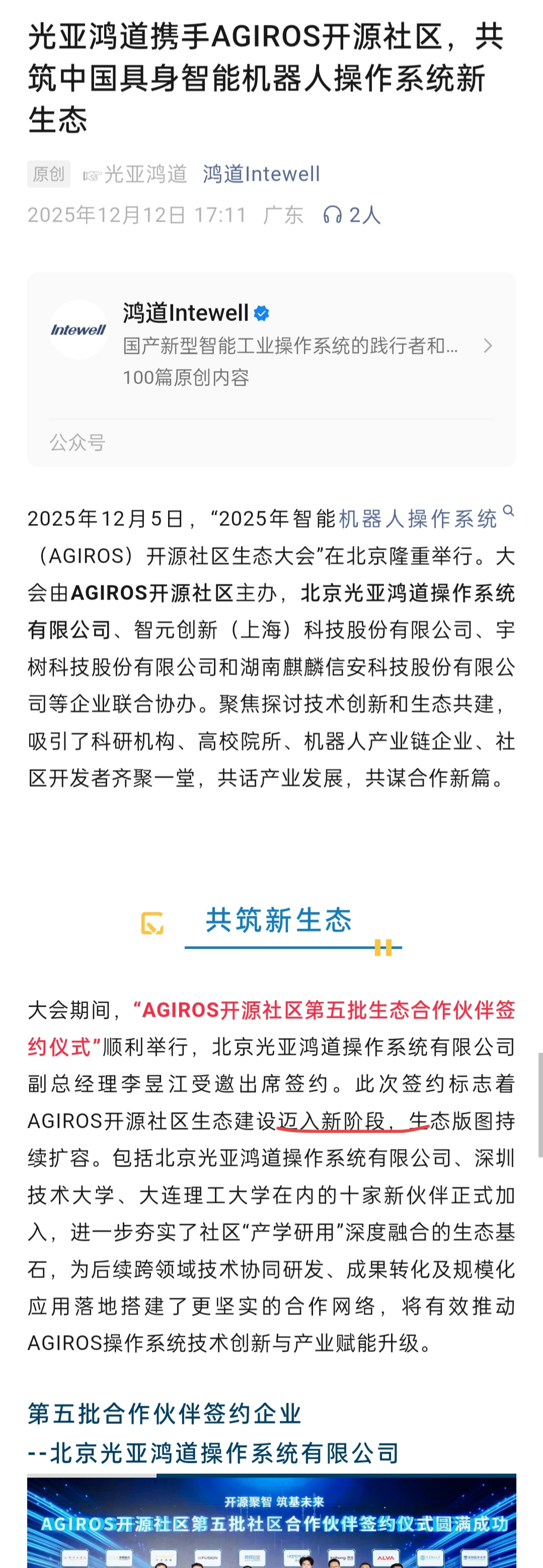 此次签约标志着AGIROS开源社区生态建设迈入新阶段,对应智能机器人1-100阶段。