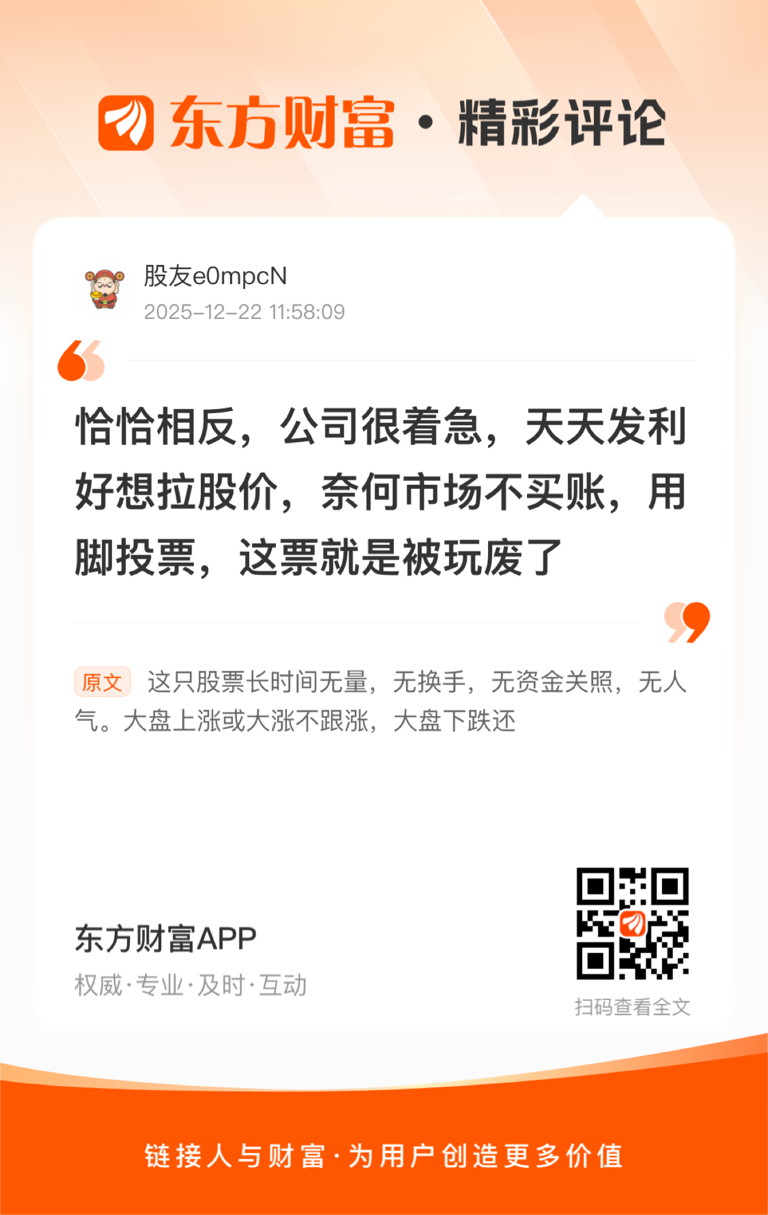 温馨提示: 1.根据《证券法》规定,禁止编造、传播虚假信息或者误导性信息,扰乱证券市场;2.用户在本社区发表的所有资料、言论等仅代表个人观点,与本网站立场无关,不对您构成任何投资建议。用户应基于自己的独立判断,自行决定证券投资并承担相应风险。《东方财富社区管理规定》