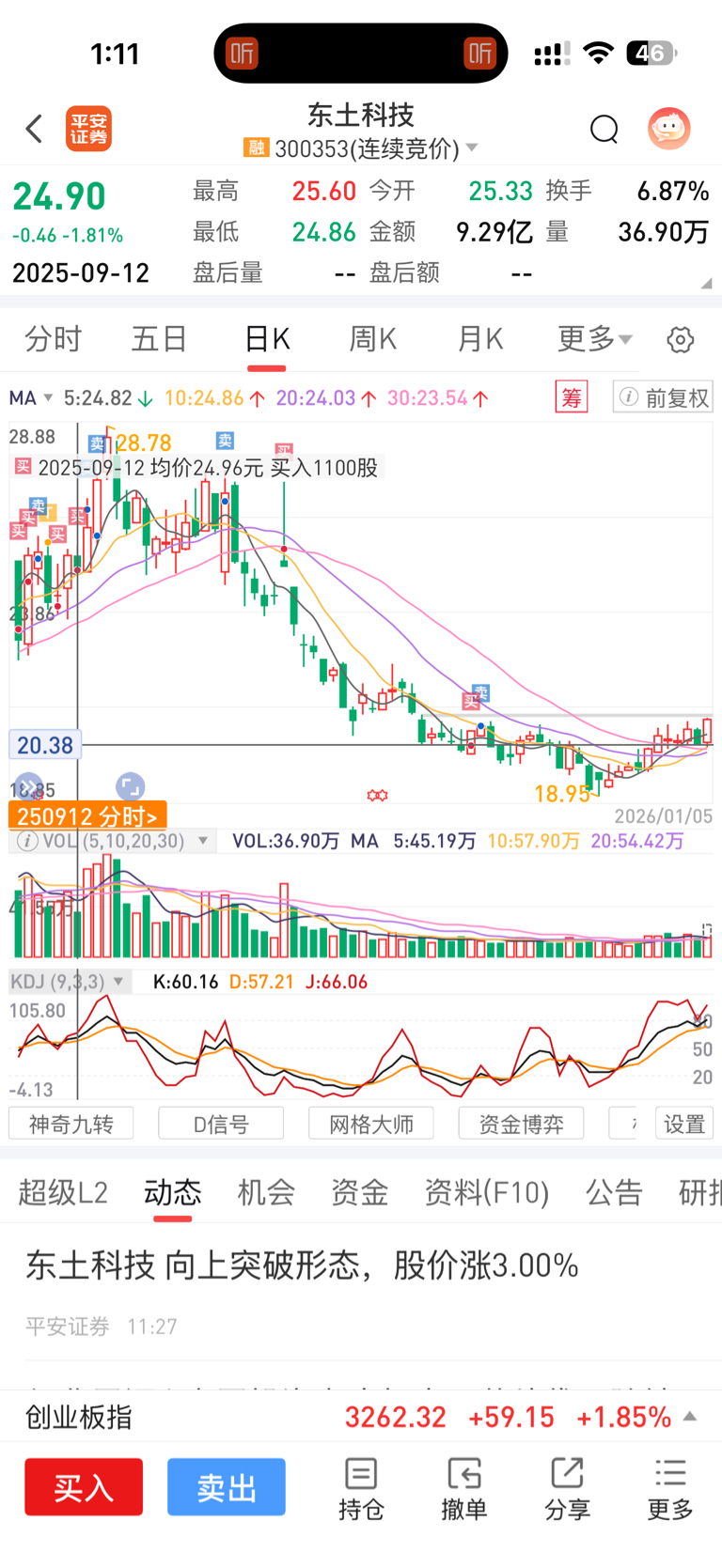 $东土科技(SZ300353)$ 11/28开始尝试做了一笔t。12/2号讲东土进入有效行情。连一根线,这就是股性。东土没变,变得只是没有耐心的散户罢了。10%仓位,陪伴东土,看他能走到哪。最后提醒这标的新散户尽量别碰。成本优势是关键。