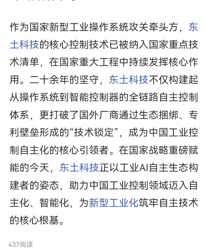 东土科技作为工业操作系统
