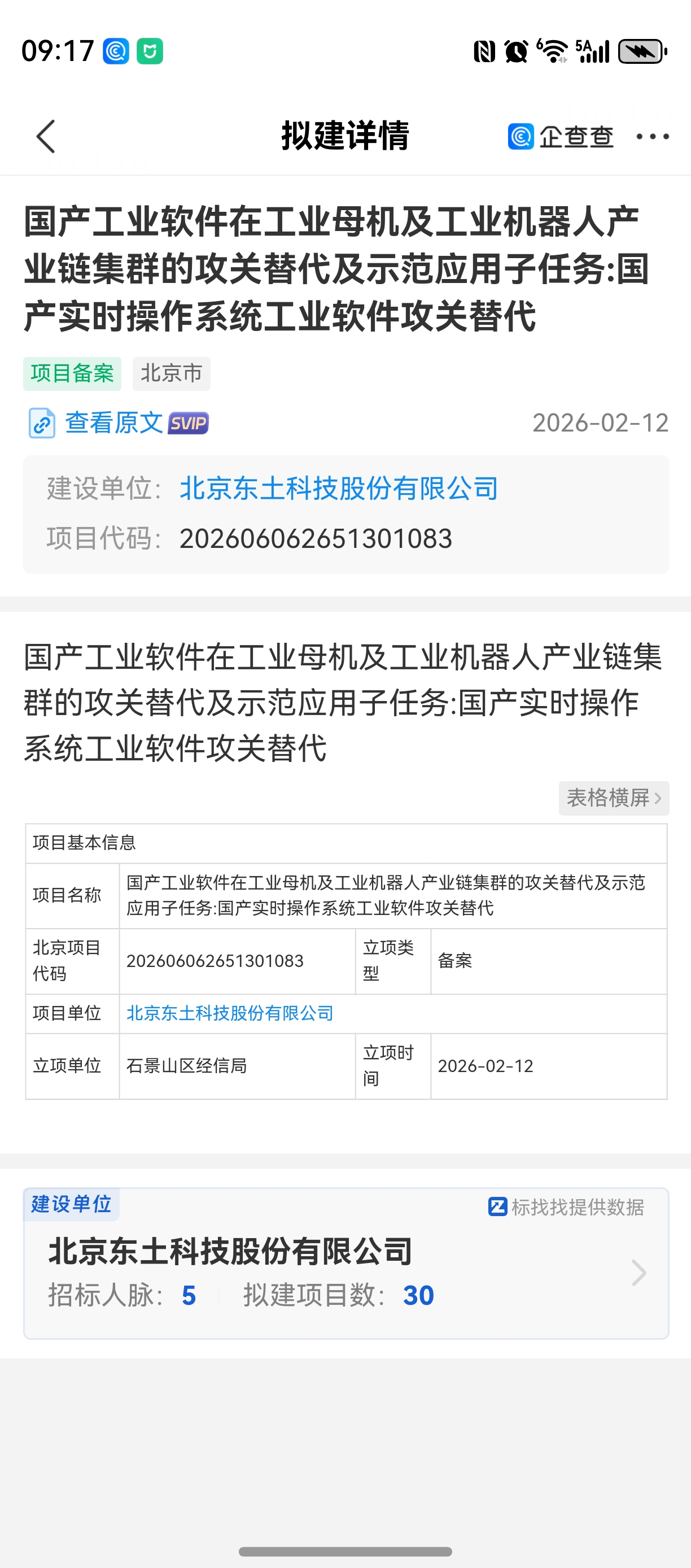 东土:新增项目(国产工业软件在工业母机及工业机器人产业链集群的攻关替代及示范)