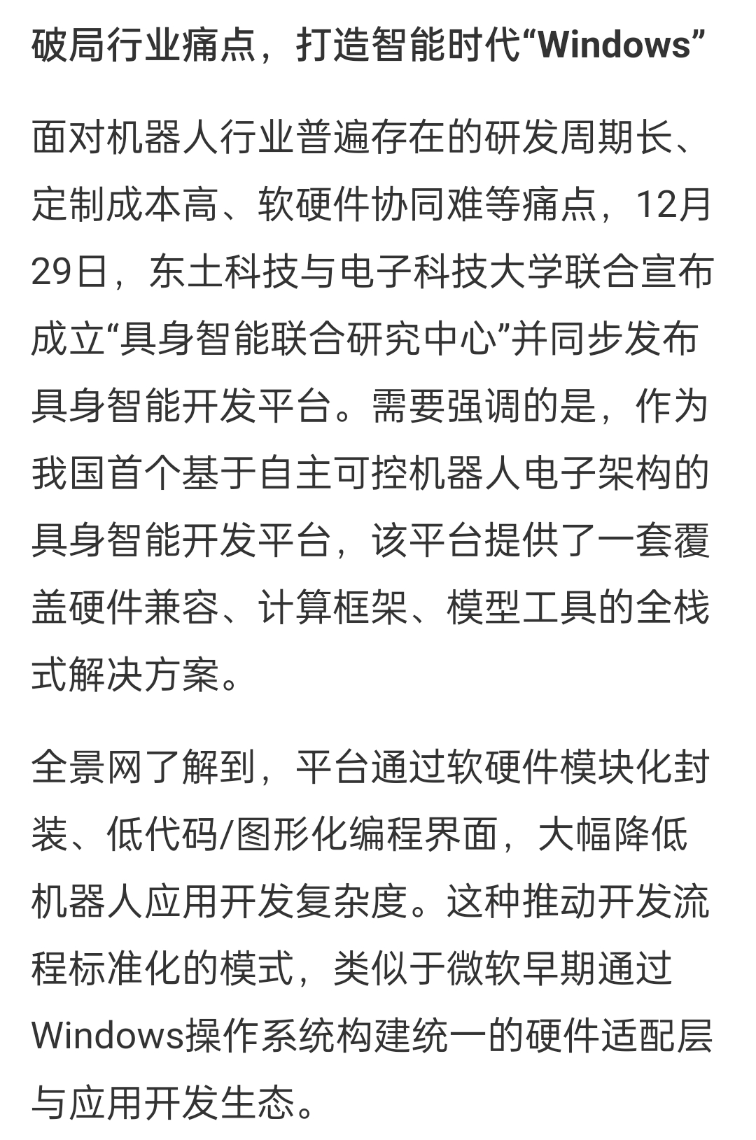 利好东土科技与电子科技大学联合发布的具身智能开发平台的“迭代”。