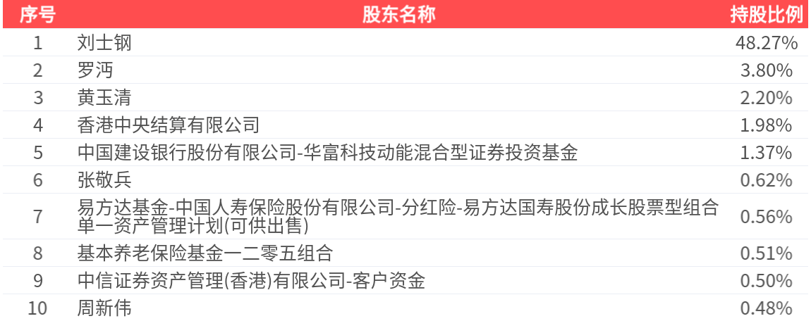 公司股东户数为1.38万户,前十大股东持股数量为8339.73万股,占总股本比例为60.29%,前十大股东持股情况如下: