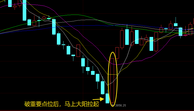 早盘一度跌穿3865点,确实应该引起警觉,但我们也同时看到,第二根5分钟K线,瞬即收回了,而且以V的强硬方式收回,那么这种跌破重要点位,通常认为是惯性作用,看无效。
