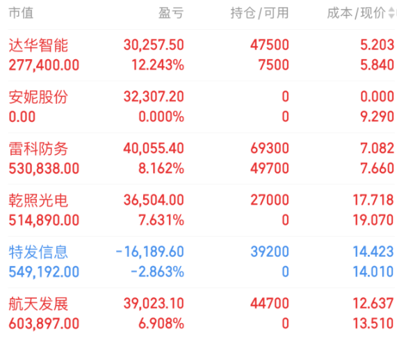 达华智能:高开是好的,但盘口偏软一些,做了个T,先拿吧,毕竟也是福建+商业航天,而且浮盈已经超过10个点了,暂时也没啥可担心的。