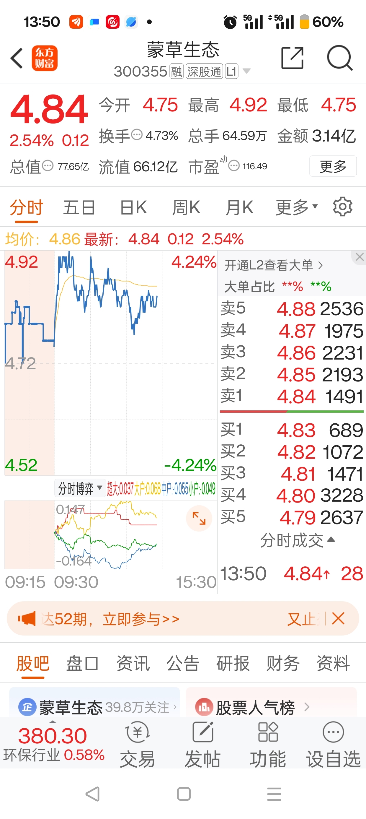 $蒙草生态(SZ300355)$ 事实是适时实施卖出,没有错。蒙草现在4.84