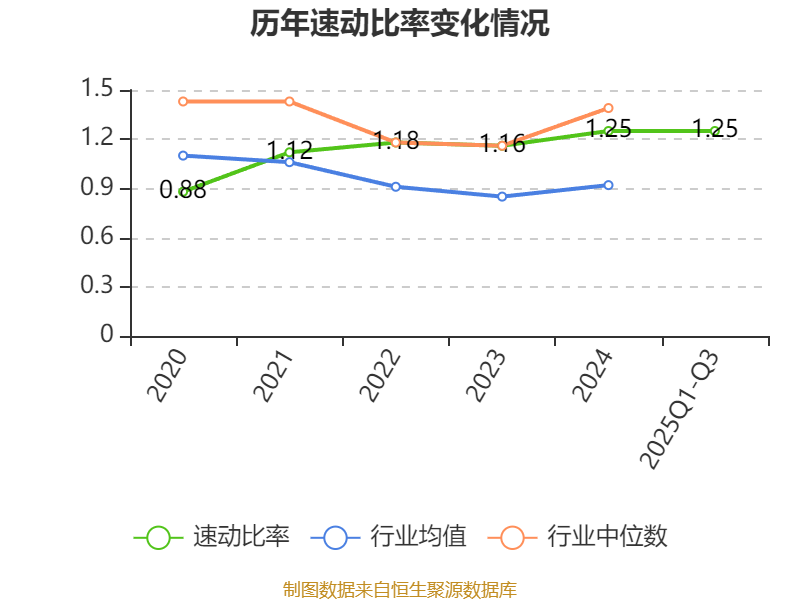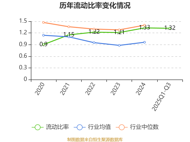 2025年前三季度,公司流动比率为1.32,速动比率为1.25。