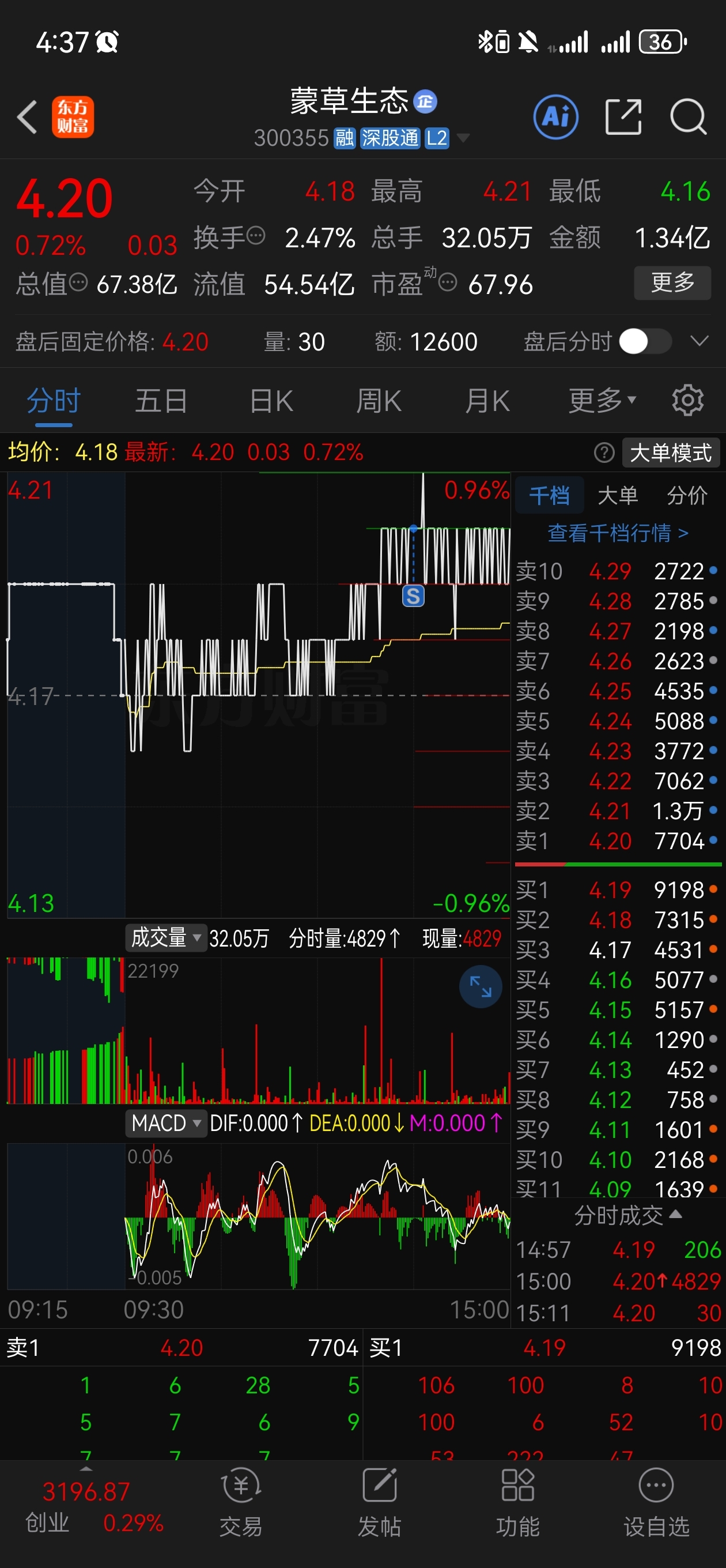 $蒙草生态(SZ300355)$ 420卖了点,看看它能不能在420以上撑久一些。