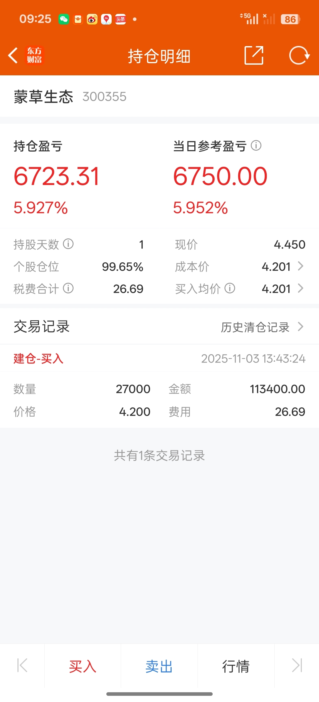 $蒙草生态(SZ300355)$ 啥情况,昨天刚进来就给我六个点?