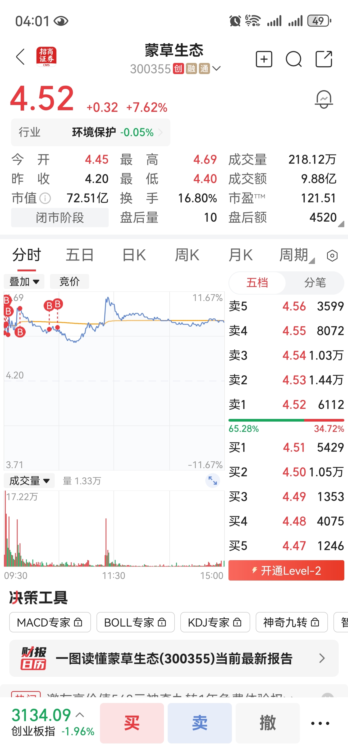 $蒙草生态(SZ300355)$ 今天买了个寂寞