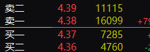 昨天4.35,4.36万手大单压盘,今天4.38,4.39又是万手大单压盘,姥姥的。
