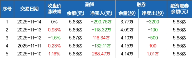 蒙草生态:融资净偿还299.76万元,融资余额5.83亿元(11-14)