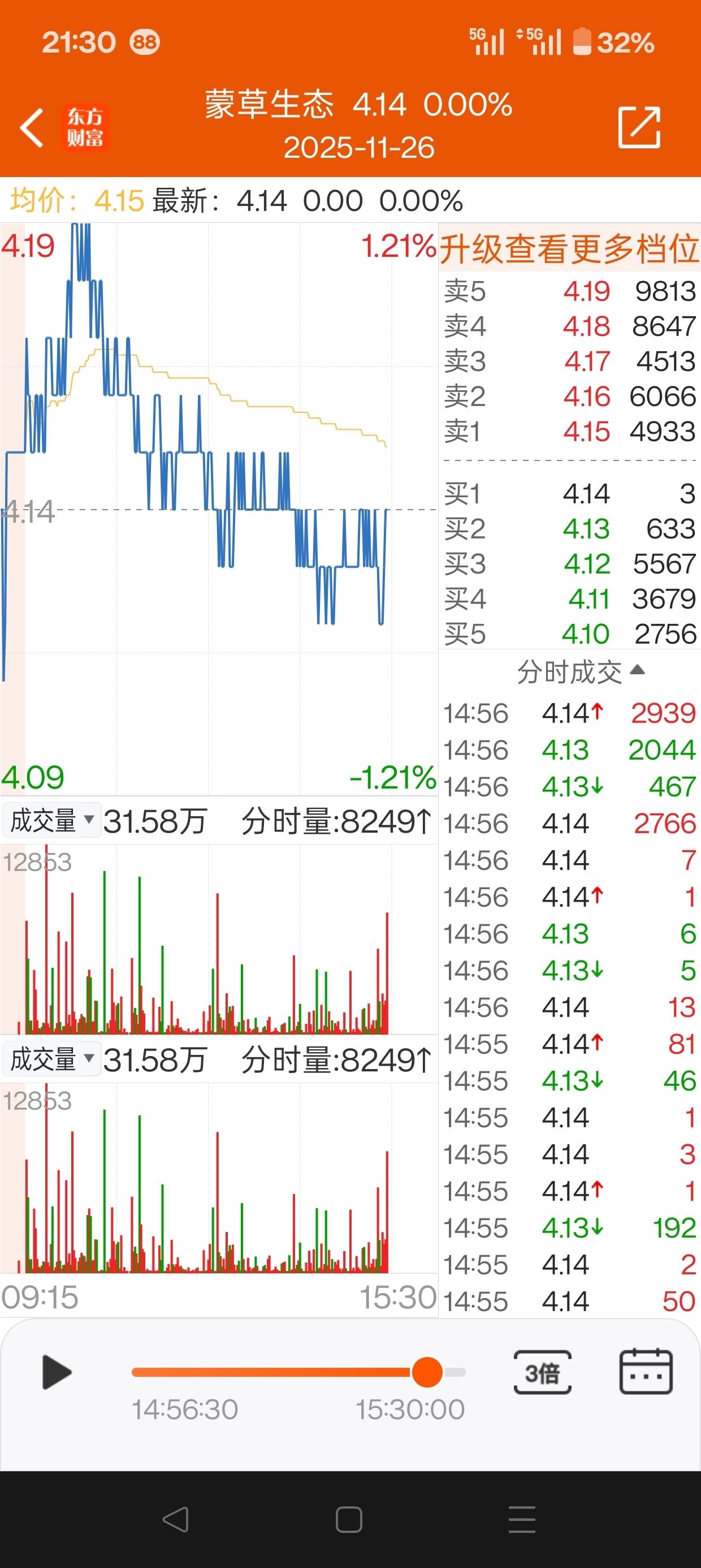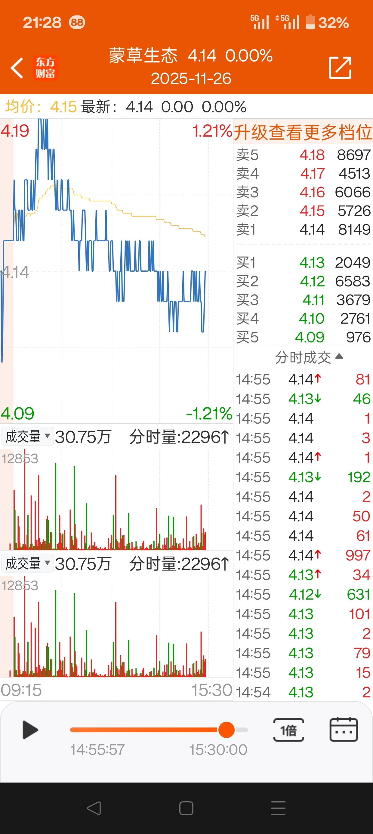 看看,这尾盘,4.14有八千手卖单,最后一分钟给吃掉了。明天早盘必然下跌,补缺口