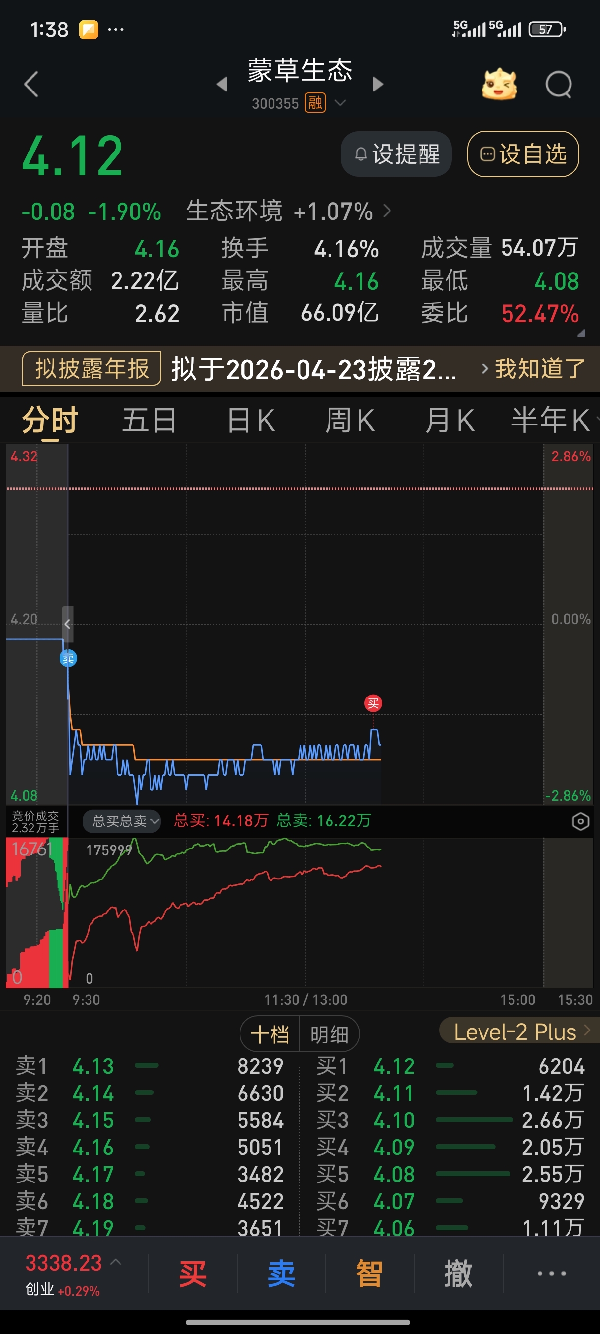 $蒙草生态(SZ300355)$ 我又进来了,做了个T,堵他涨