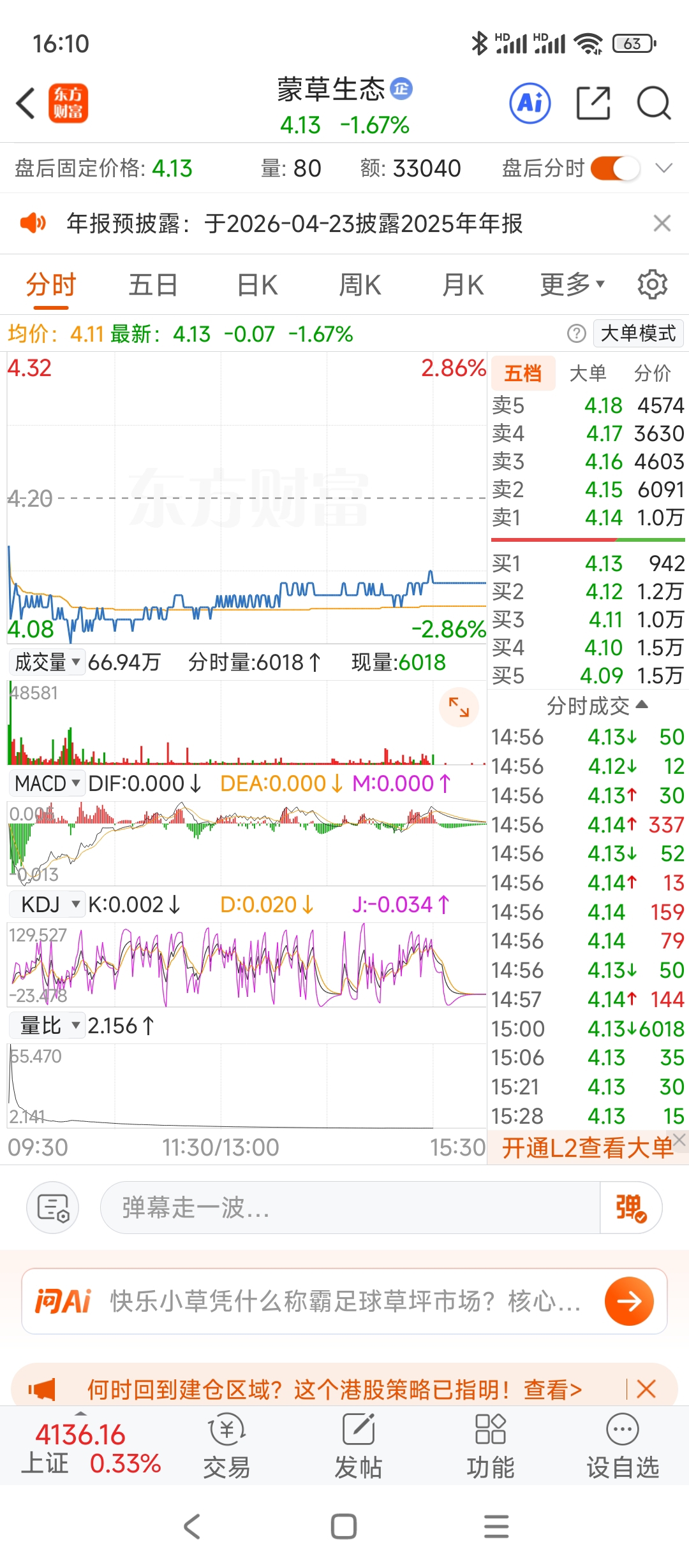 $蒙草生态(SZ300355)$ 15:00之后还能卖?