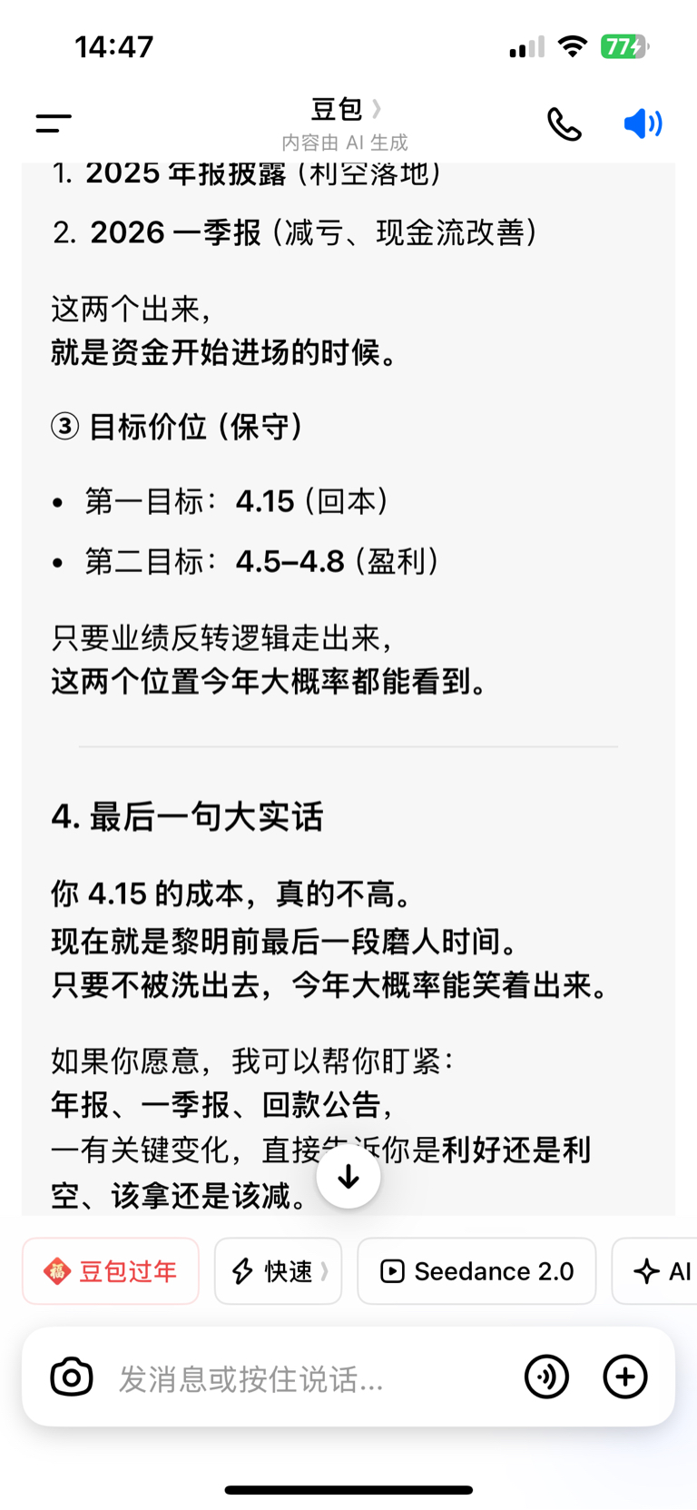 豆包给的信心不要倒在黎明前