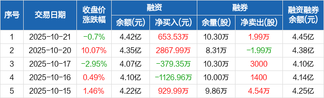 我武生物:融资净买入653.53万元,融资余额4.42亿元(10-21)