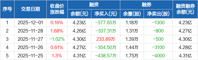 我武生物:融资净偿还377.65万元,融资余额4.23亿元(12-01)