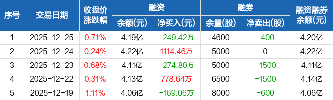 我武生物:融资净偿还249.42万元,融资余额4.19亿元(12-25)