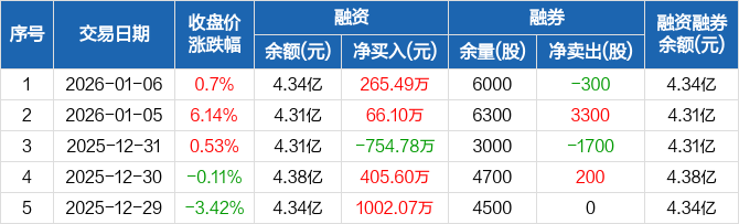 我武生物:融资净买入265.49万元,融资余额4.34亿元(01-06)