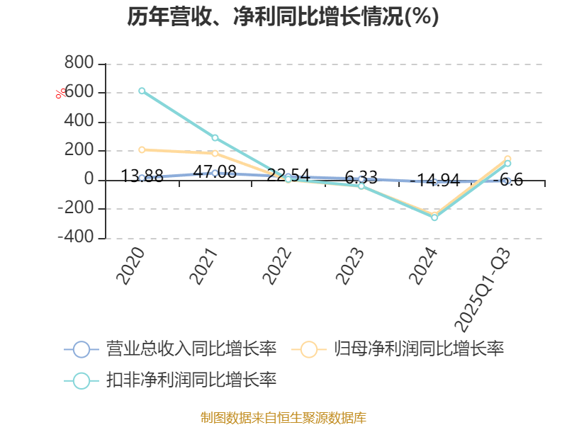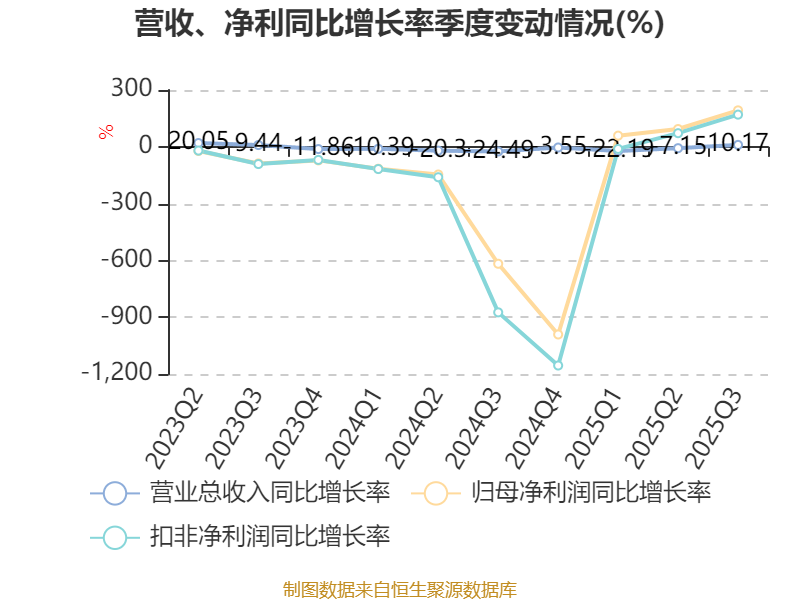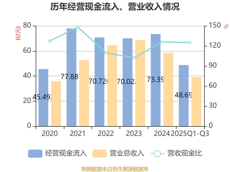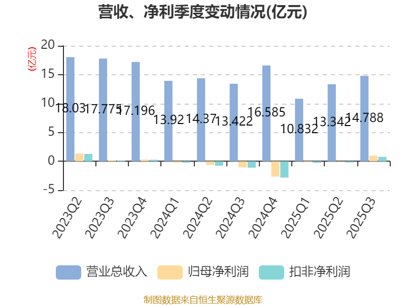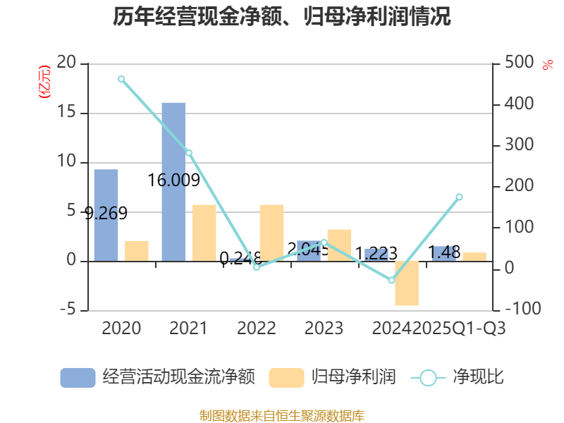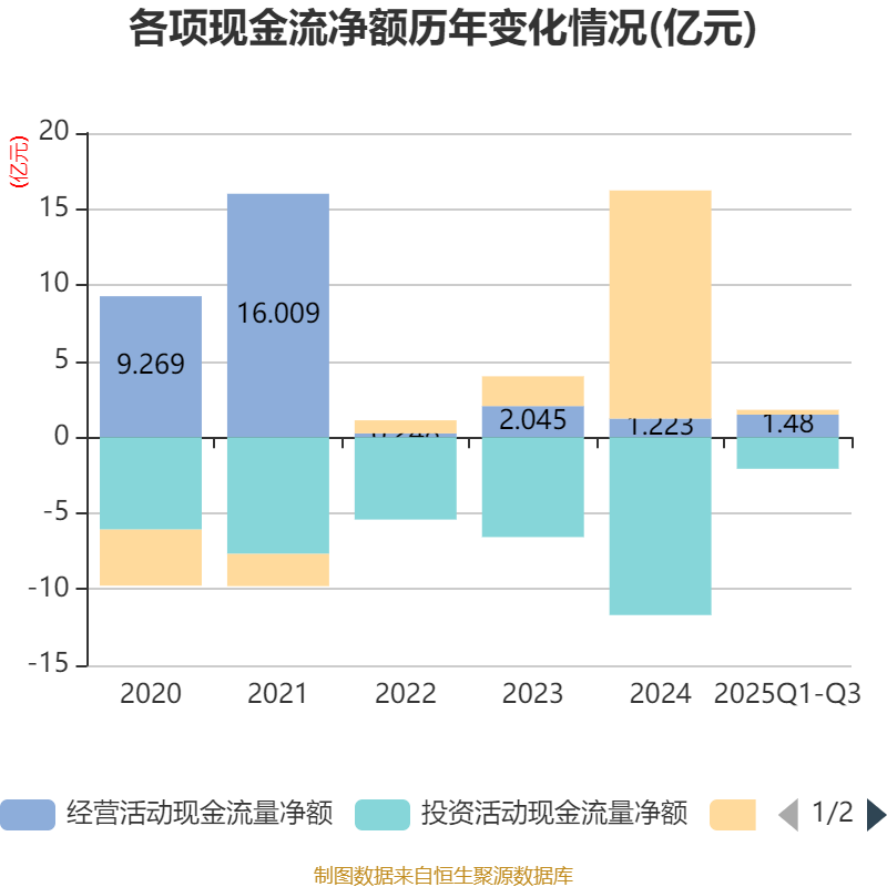 2025年前三季度,公司经营活动现金流净额为1.48亿元,同比增加4.93亿元;筹资活动现金流净额3182.82万元,同比减少14.86亿元;投资活动现金流净额-2.08亿元,上年同期为-10.73亿元。