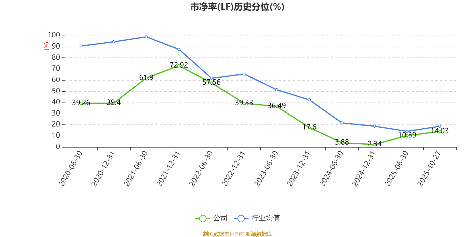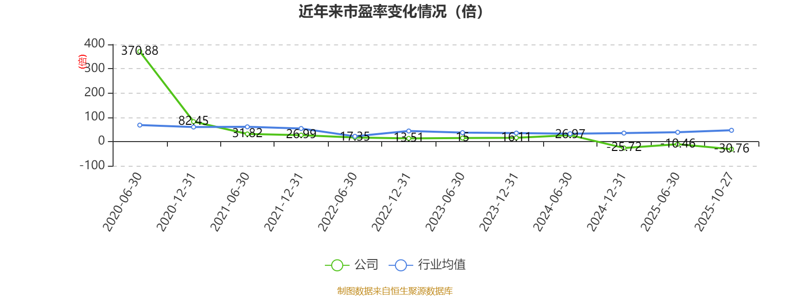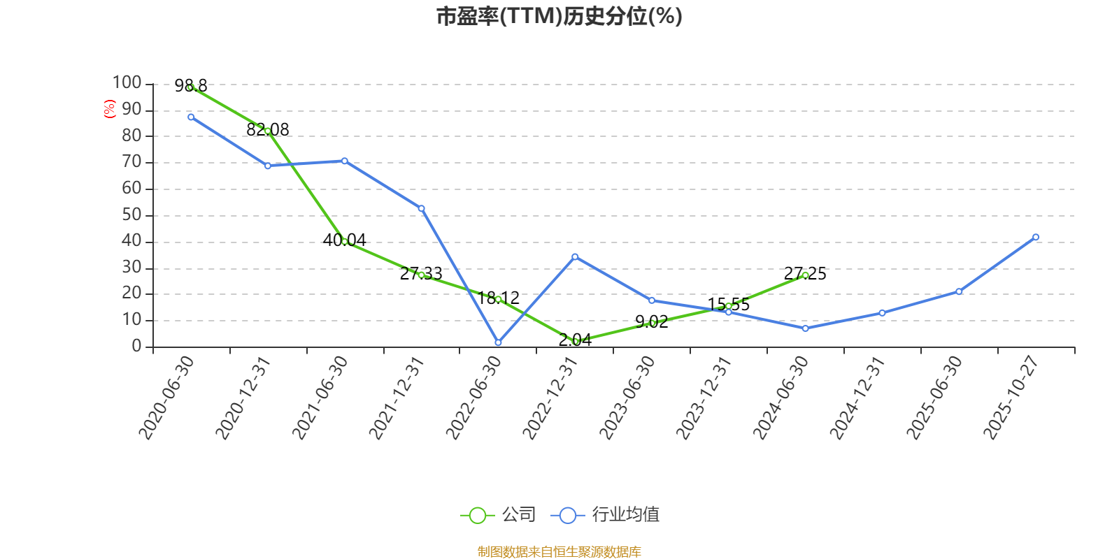 市盈率、市净率为负时,不显示当期分位数,会导致折线图中断。