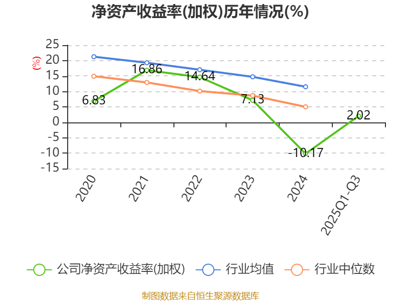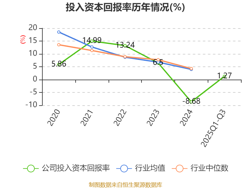 盈利能力方面, 2025年前三季度公司加权平均净资产收益率为2.02%,同比上升5.98个百分点。公司2025年前三季度投入资本回报率为1.27%,较上年同期上升5.08个百分点。