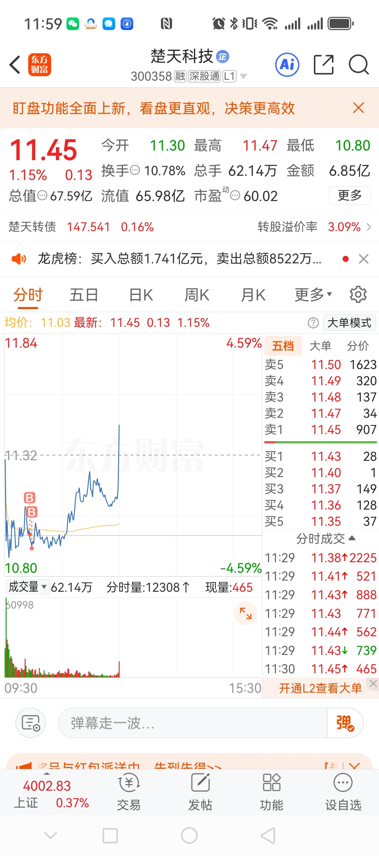 $楚天科技(SZ300358)$ 明天20CM,火鸡们冲鸭!