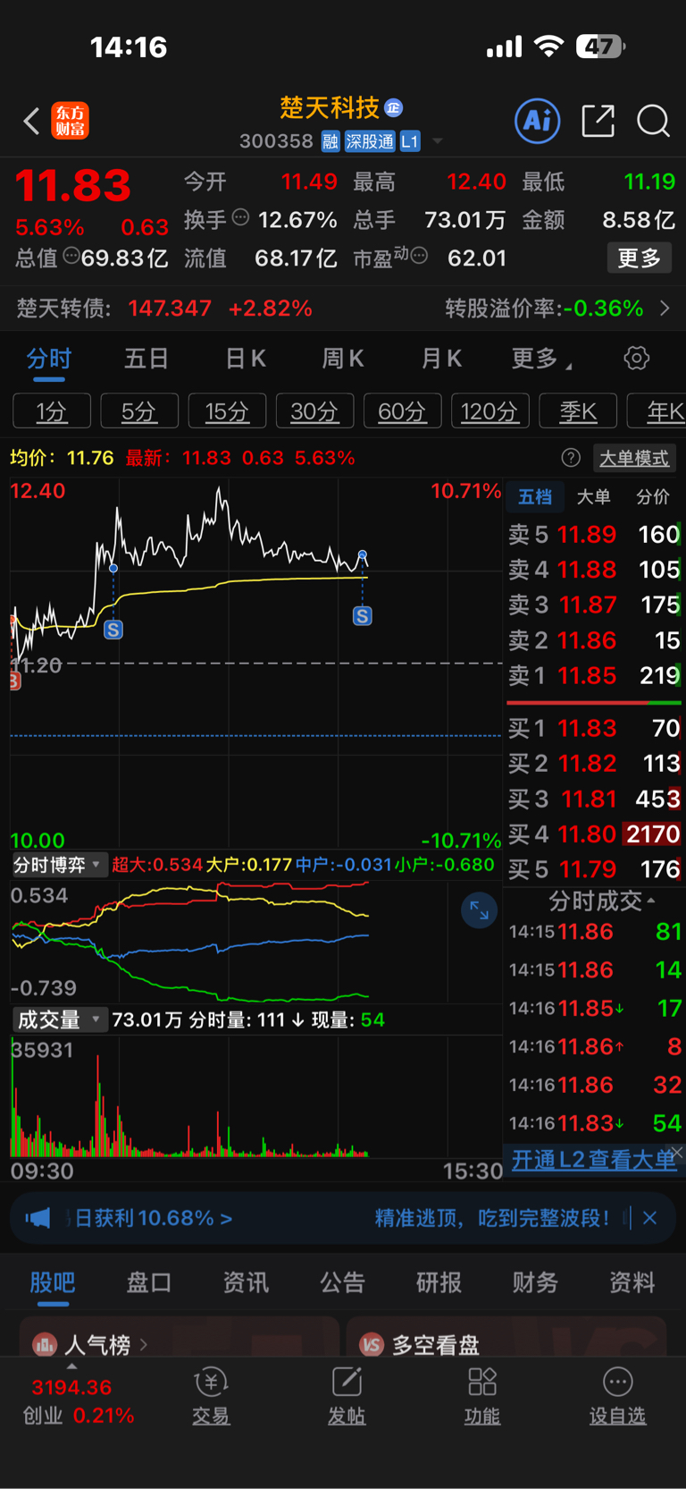 $楚天科技(SZ300358)$ 不拉涨停走了,随便你怎么玩,轻仓应对,控制回撤,还好买的康盛股份涨停了,都是大肉。