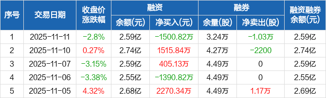 楚天科技:融资净偿还1500.82万元,融资余额2.59亿元(11-11)