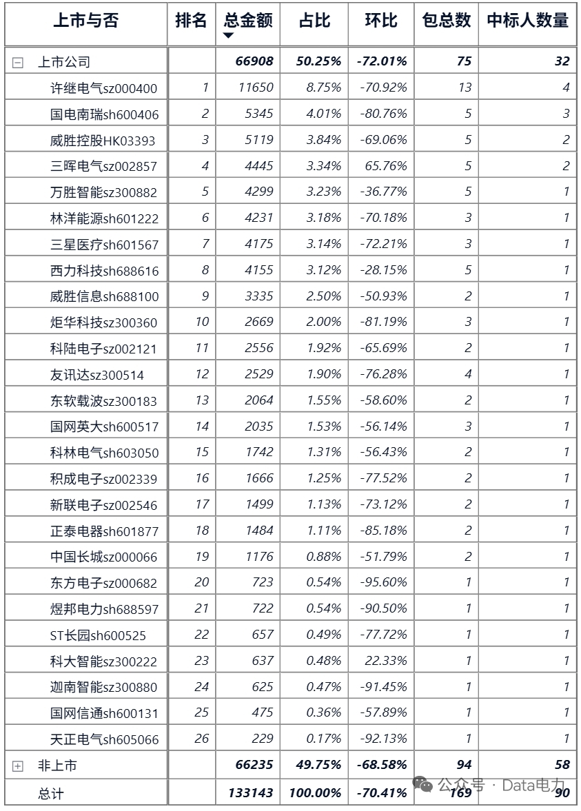 $炬华科技(SZ300360)$ 本批次终端汇总各中标人中标数据一览
