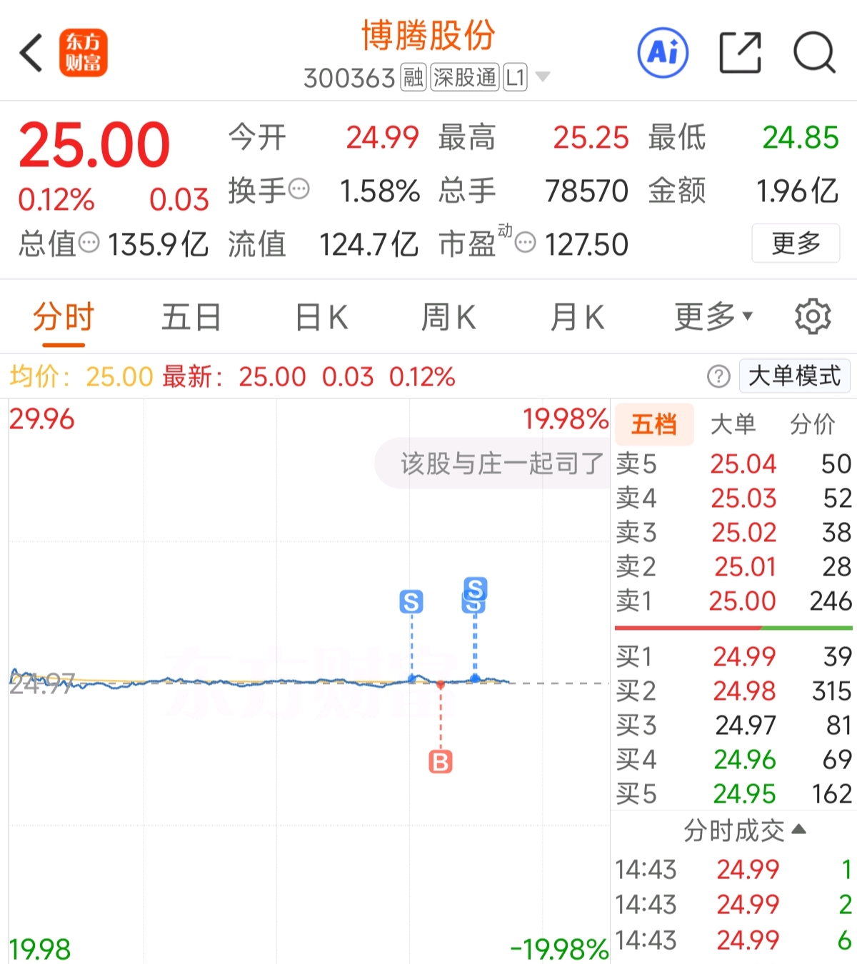 $博腾股份(SZ300363)$ 4毛的振幅做了1毛的T,比那些织布机股都走的平,今天大盘涨这么多,还是怕了,先减仓