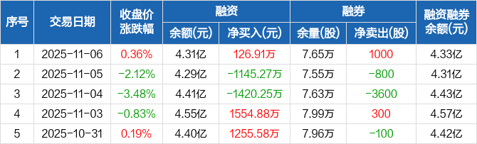 博腾股份:融资净买入126.91万元,融资余额4.31亿元(11-06)