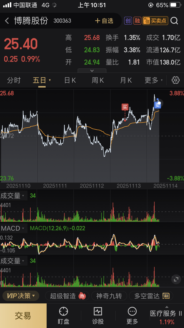 $博腾股份(SZ300363)$ 昨天苟了一下,赚了不到2%跑了,20日线压制强烈,不放量中阳,就没有奇迹